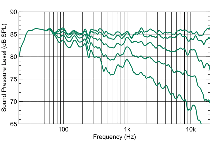 The point source design principle combined with optimised directivity control maintains the frequency balance in off-axis positions, supporting correct understanding of the sound colour when moving, standing or sitting in the monitoring room.